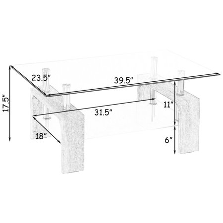 Wood Tempered Glass Top Coffee Table Rectangular W Shelf Home Furniture