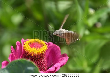 Butterfly Collecting Nectar On Flowers Hummingbird Hawk