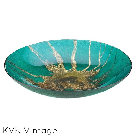 Fused Glass Bowl Teal Green Large Glass Bowl Green Serving