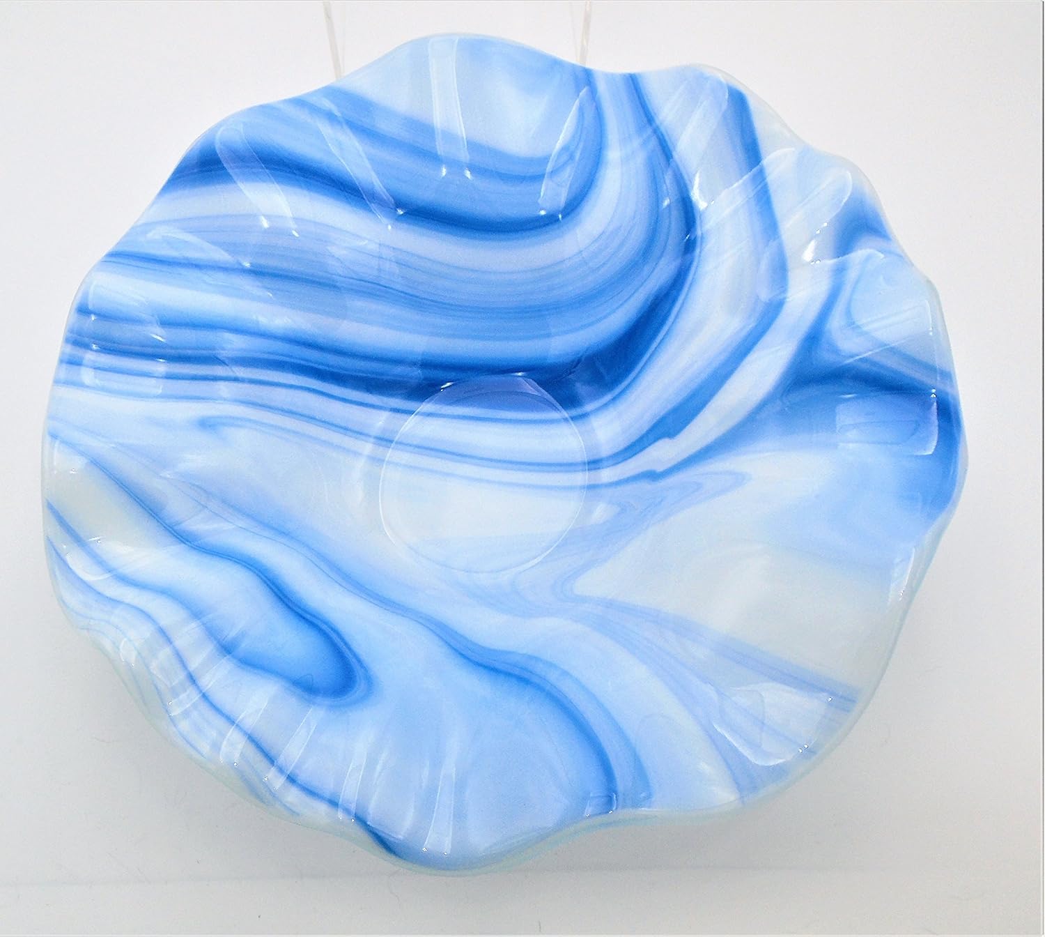 Fused Glass Bowl Blue Confetti Fused Glass Dish Fruit Bowl Decorative Bowl Serving Bowl Decorative Plate Candy Bowl