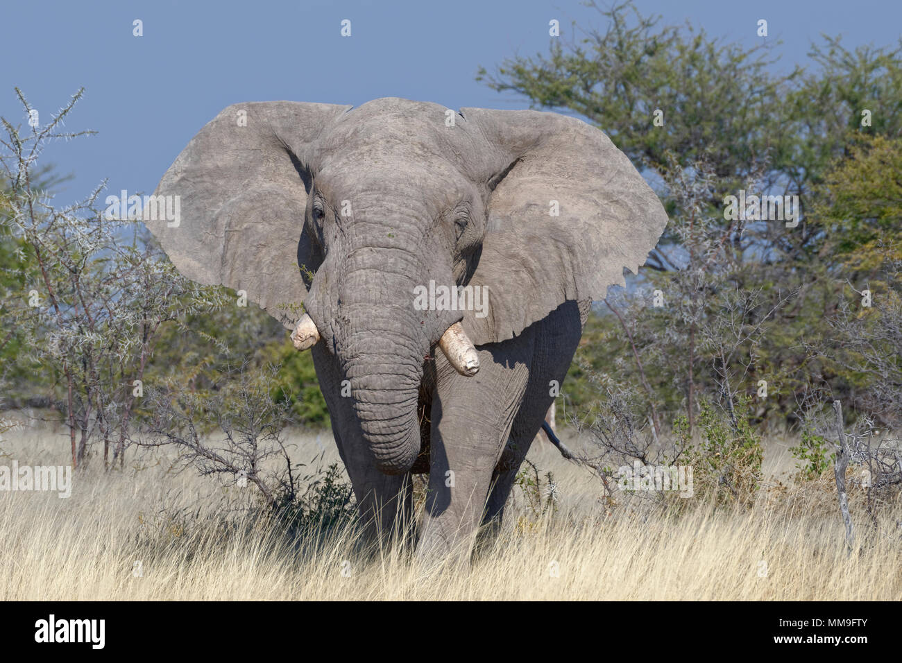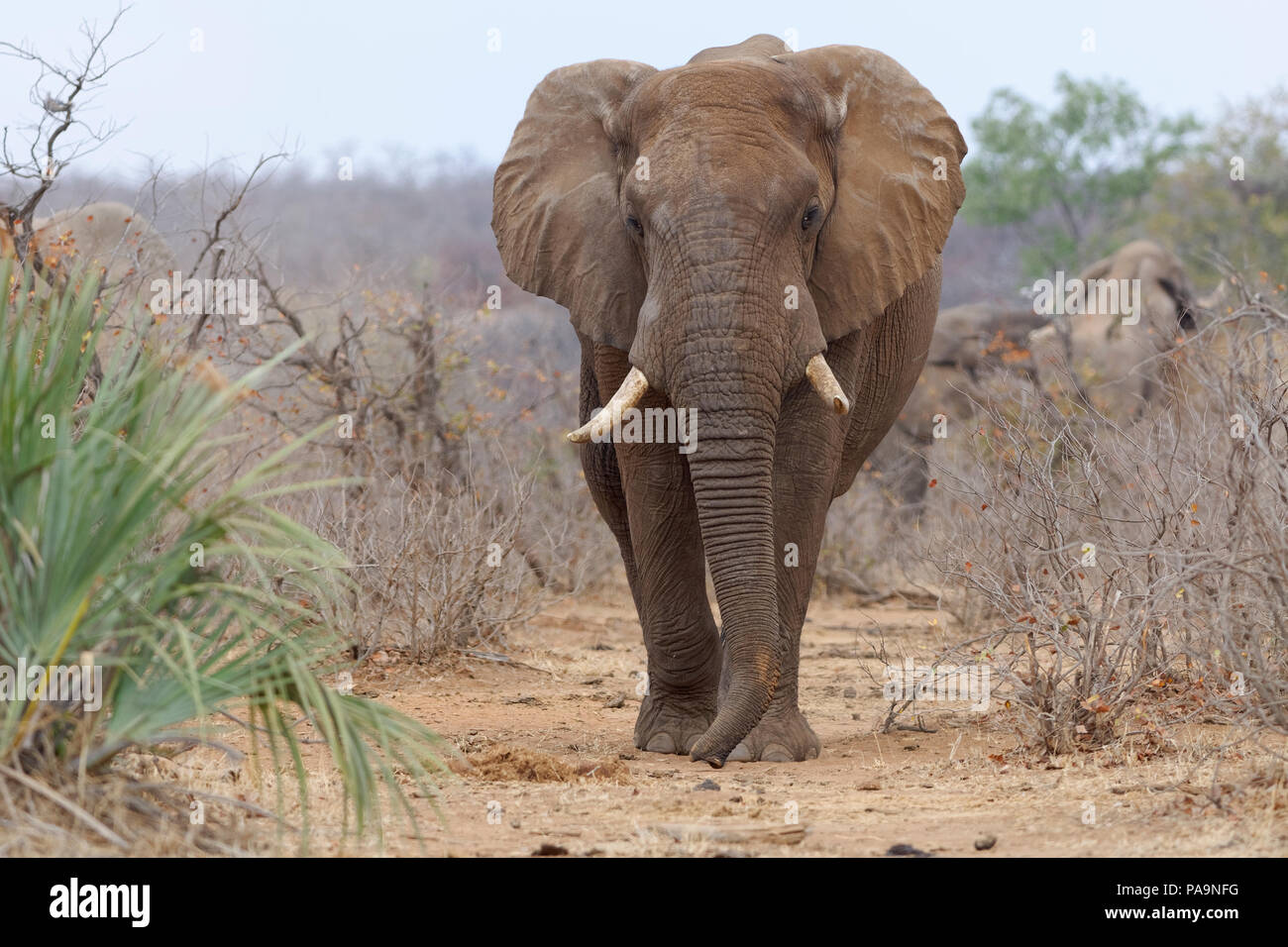 Large Bull Elephant Walking Through The African Bush Stock