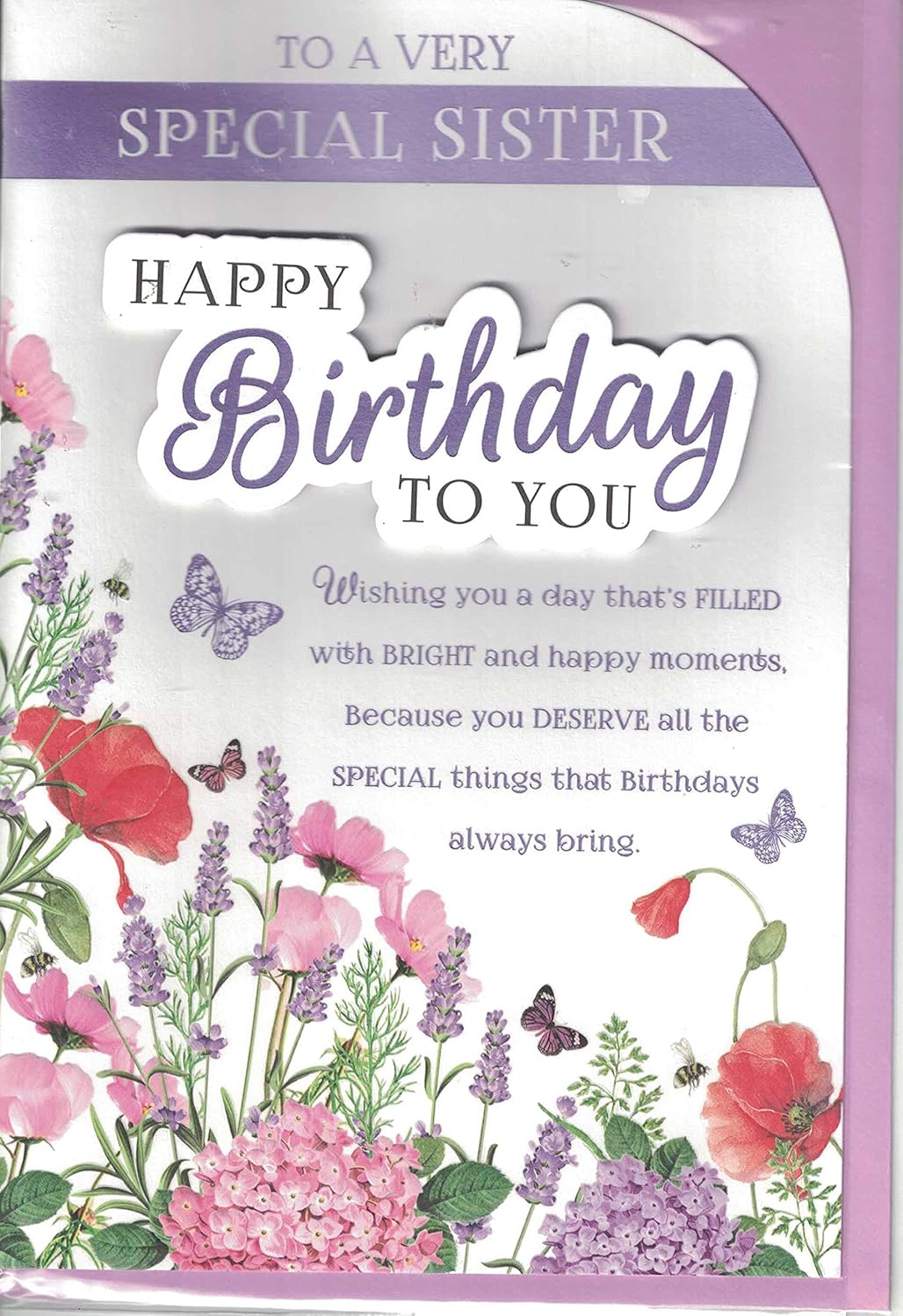 Details About Sister Flowers Butterflies Design Happy Birthday Quality Card Lovely Verse