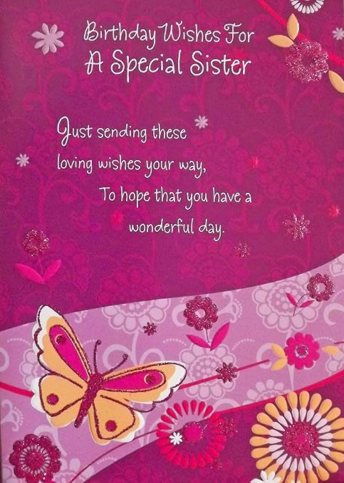 Sister Birthday Card Birthday Wishes To A Special Sister With Love Pink Foil Butterflies
