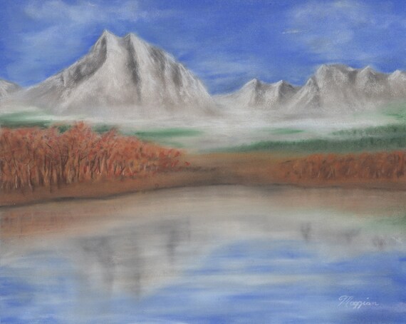 Mountain Landscape Drawing Pastel Painting Pastel Drawing Landscape Fall Painting Hand Drawn Artwork Original Art Lake Art Mountains