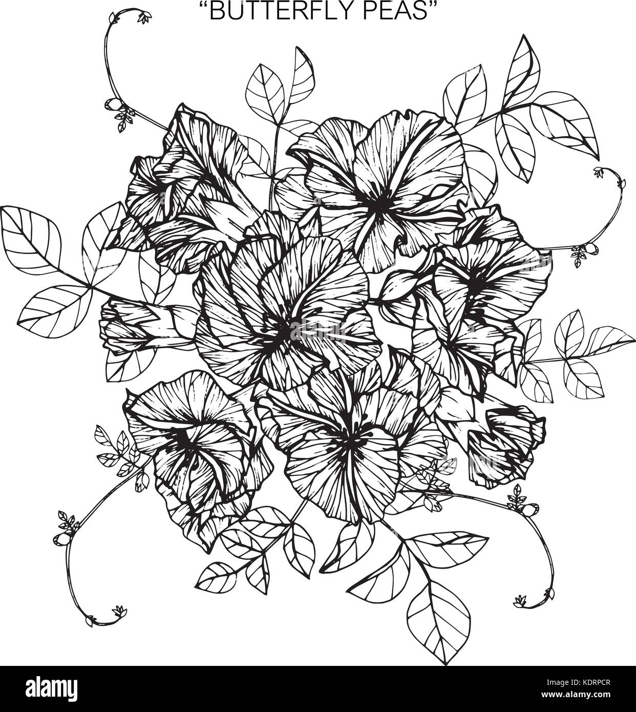 Butterfly Pea Flowers Drawing And Sketch With Line Art Stock